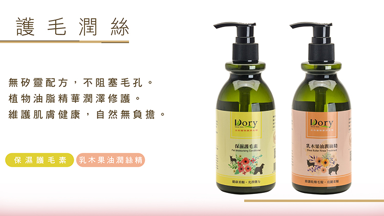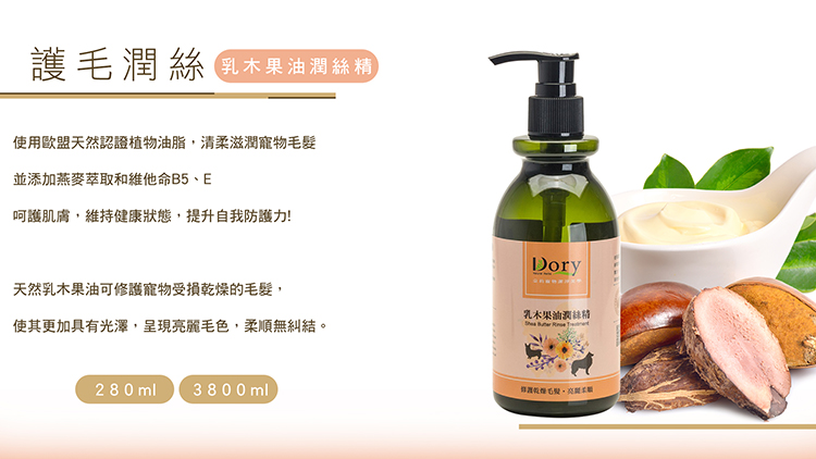 使用歐盟天然認證植物油脂,清柔滋潤寵物毛髮,並添加燕麥萃取和維他命B5、E呵護肌膚,維持健康狀態,提升自我防護力!天然乳木果油可修護寵物受損乾燥的毛髮,使其更加具有光澤,呈現亮麗毛色,柔順無糾結。