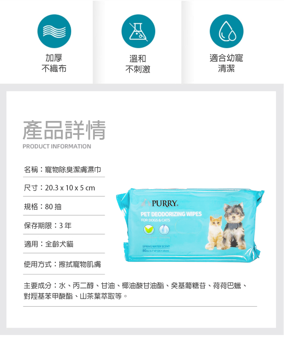銷售據點 常見問題 Facebook 最新消息 會員登入 0 關於宬泰About us 新品專區New Product 營養保健/護理Care 關節保養 頂級魚油 舒緩軟膏 伊莉莎白頸圈 手術衣 喵星人洗手間 Cat Litter 豆腐砂 除臭粉 貓砂盆 掛鏟 落砂墊 洗澡清潔Cleaning 洗毛精 護毛潤絲 耳朵清潔 眼睛清潔 乾洗清潔 口腔清潔oral care 噴霧、潔牙水 指套、牙刷 潔淨牙膏 寵物零食Treats 細切條 其他形狀(柱型、圓片) 外出用品Outing 帳篷外出包 後背外出包 側背外出包 前背外出包 推車/推車配件 外出包拉桿車 汽車寵物用品 投影燈/水壺/碗 寵物配件Accessories 喵喵胸背/項圈 汪汪胸背/項圈 汪汪牽繩 撿便袋 狗狗玩具Dog Toy 互動錄音按鈕 磨牙啃咬 潔牙耐咬 絨毛陪伴 藏食互動 貓貓玩具Cat Toy 逗貓棒 貓草玩具 電動貓玩具 可愛小玩具 居家用品Pet Bed 床窩 貓吊床 貓抓板 寵物餐具 居家除臭 小寵用品Hamster 下場活動預告:展昭高雄寵物用品展12/12-15 高雄展覽館 獨霸場 南部最大寵物展 首頁 乾洗清潔 除臭潔膚巾80抽 品牌:Purry沛立潔 單位:包 規格: 請選擇 除臭潔膚巾80抽 數量: 1 2 3 原價: NT$ 120 會員價: NT$ 108 加入購物車 商品特色 商品成分