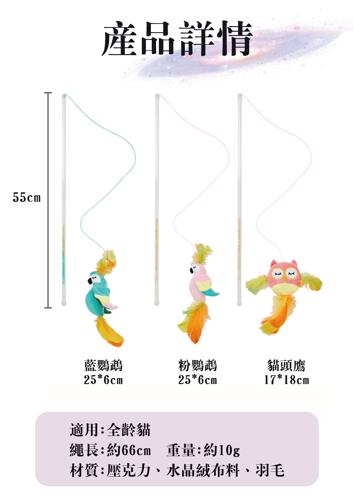 銷售據點 常見問題 Facebook 最新消息 會員登入 0 關於宬泰About us 新品專區New Product 營養保健/護理Care 關節保養 頂級魚油 舒緩軟膏 伊莉莎白頸圈 手術衣 喵星人洗手間 Cat Litter 豆腐砂 除臭粉 貓砂盆 掛鏟 落砂墊 洗澡清潔Cleaning 洗毛精 護毛潤絲 耳朵清潔 眼睛清潔 乾洗清潔 口腔清潔oral care 噴霧、潔牙水 指套、牙刷 潔淨牙膏 寵物零食Treats 細切條 其他形狀(柱型、圓片) 外出用品Outing 帳篷外出包 後背外出包 側背外出包 前背外出包 推車/推車配件 外出包拉桿車 汽車寵物用品 投影燈/水壺/碗 寵物配件Accessories 喵喵胸背/項圈 汪汪胸背/項圈 汪汪牽繩 撿便袋 狗狗玩具Dog Toy 互動錄音按鈕 磨牙啃咬 潔牙耐咬 絨毛陪伴 藏食互動 貓貓玩具Cat Toy 逗貓棒 貓草玩具 電動貓玩具 可愛小玩具 居家用品Pet Bed 床窩 貓吊床 貓抓板 寵物餐具 居家除臭 小寵用品Hamster 福利專區Refurbished 下場活動預告:2026 5/15(五) - 5/18(一) 展昭台中寵物用品展-口碑場 首頁 逗貓棒 魔法逗貓棒系列 (3 styles) 品牌:Golden cat黃金貓 單位:隻 款式: 請選擇 鸚鵡(藍) 貓頭鷹 鸚鵡(粉) 數量: 1 2 3 原價: NT$ 380 會員價: NT$ 342 加入購物車 商品特色 商品成分