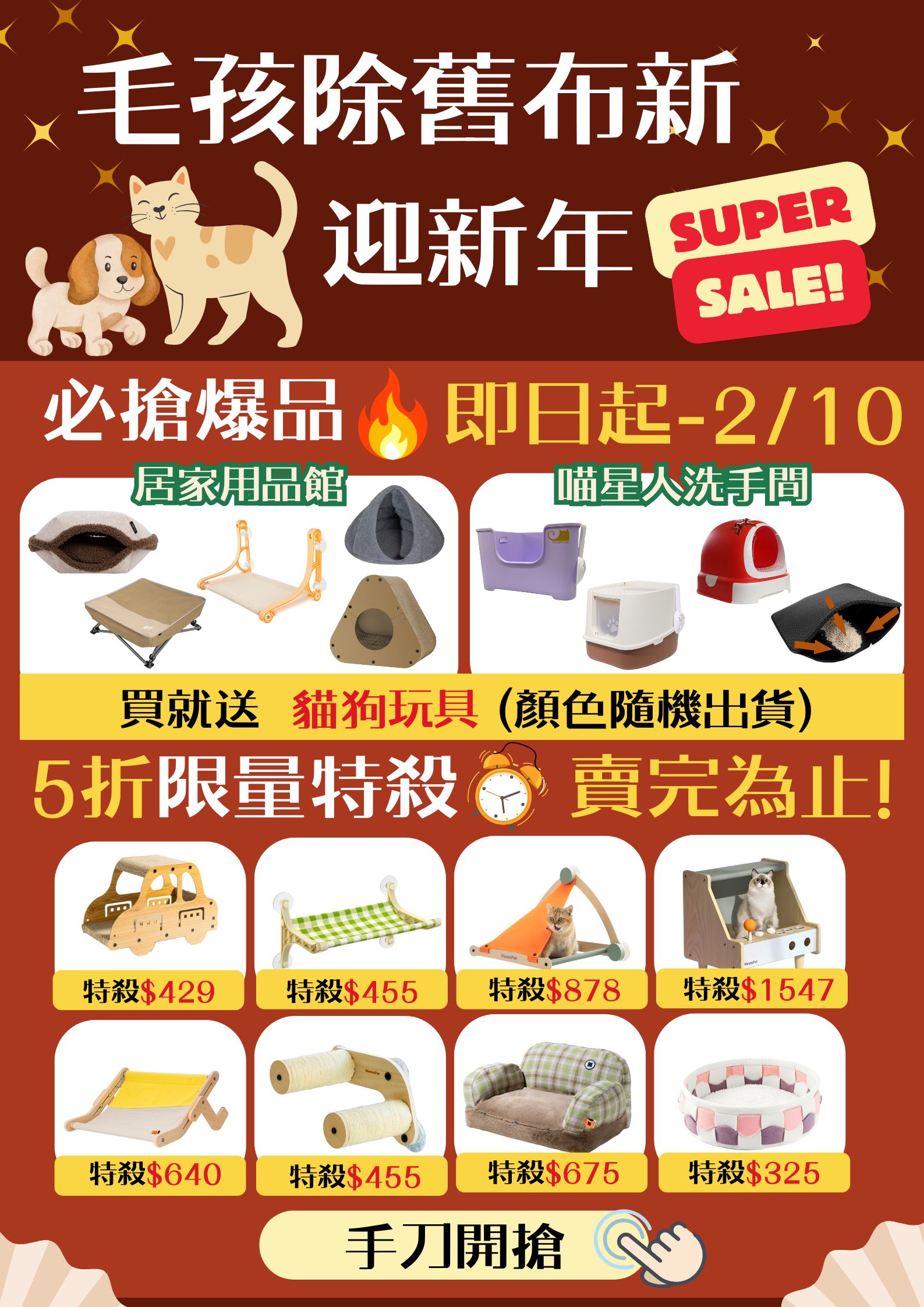 銷售據點 常見問題 Facebook 最新消息 會員登入 0 關於宬泰About us 新品專區New Product 38女王節Special offer 營養保健/護理Care 關節保養 頂級魚油 舒緩軟膏 伊莉莎白頸圈 手術衣 喵星人洗手間 Cat Litter 豆腐砂 除臭粉 貓砂盆 掛鏟 落砂墊 洗澡清潔Cleaning 洗毛精 護毛潤絲 耳朵清潔 眼睛清潔 乾洗清潔 口腔清潔oral care 噴霧、潔牙水 指套、牙刷 潔淨牙膏 寵物零食Treats 細切條 其他形狀(柱型、圓片) 外出用品Outing 帳篷外出包 後背外出包 側背外出包 前背外出包 推車/推車配件 外出包拉桿車 汽車寵物用品 投影燈/水壺/碗 寵物配件Accessories 喵喵胸背/項圈 汪汪胸背/項圈 汪汪牽繩 撿便袋 狗狗玩具Dog Toy 互動錄音按鈕 磨牙啃咬 潔牙耐咬 絨毛陪伴 藏食互動 貓貓玩具Cat Toy 逗貓棒 貓草玩具 電動貓玩具 可愛小玩具 居家用品Pet Bed 床窩 貓吊床 貓抓板 寵物餐具 居家除臭 小寵用品Hamster 福利專區Refurbished 下場活動預告:2026 5/15(五) - 5/18(一) 展昭台中寵物用品展-口碑場 首頁 最新消息 News 最新消息 2026-02-04 毛孩除舊佈新迎新年 回新聞列表