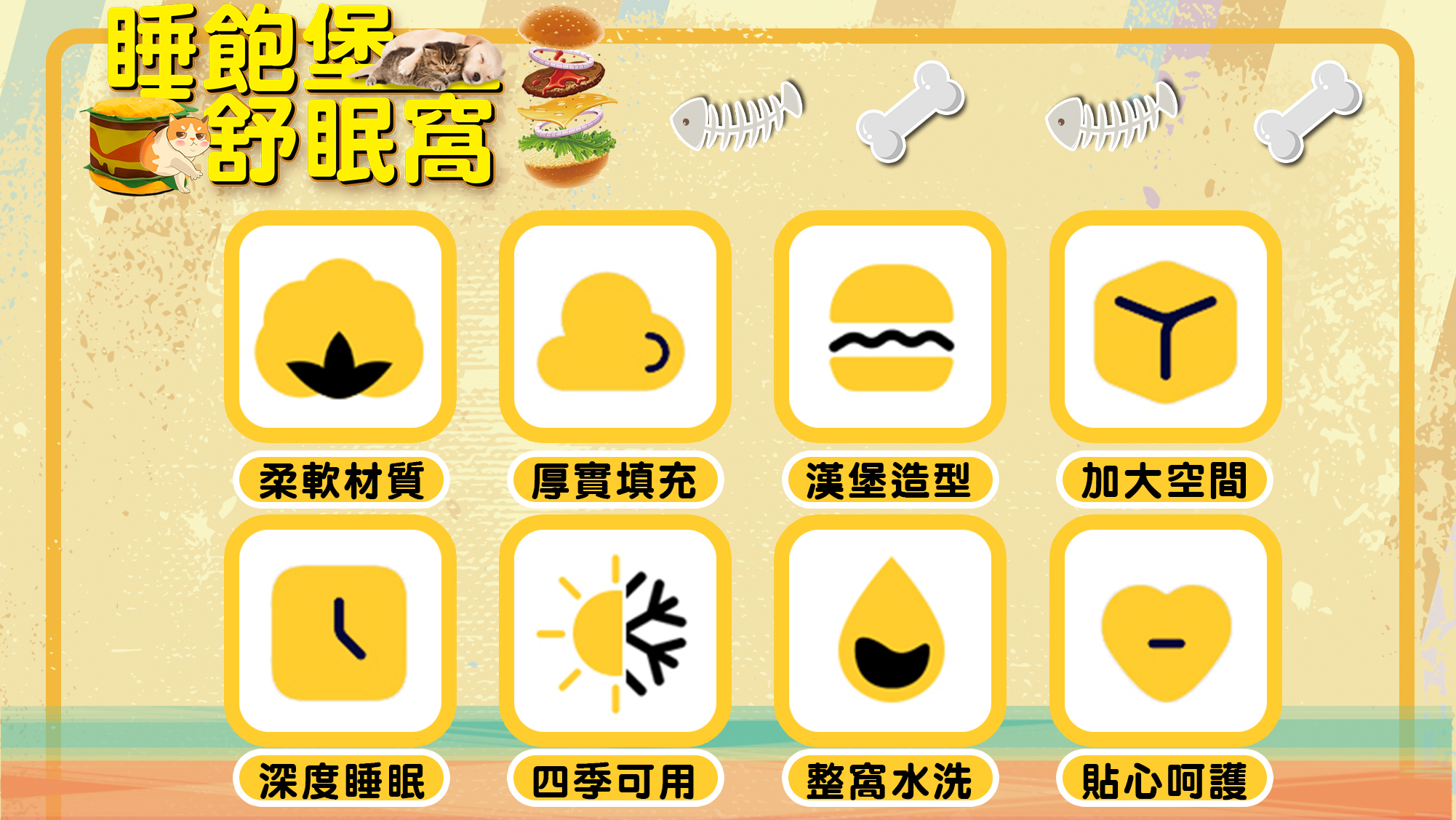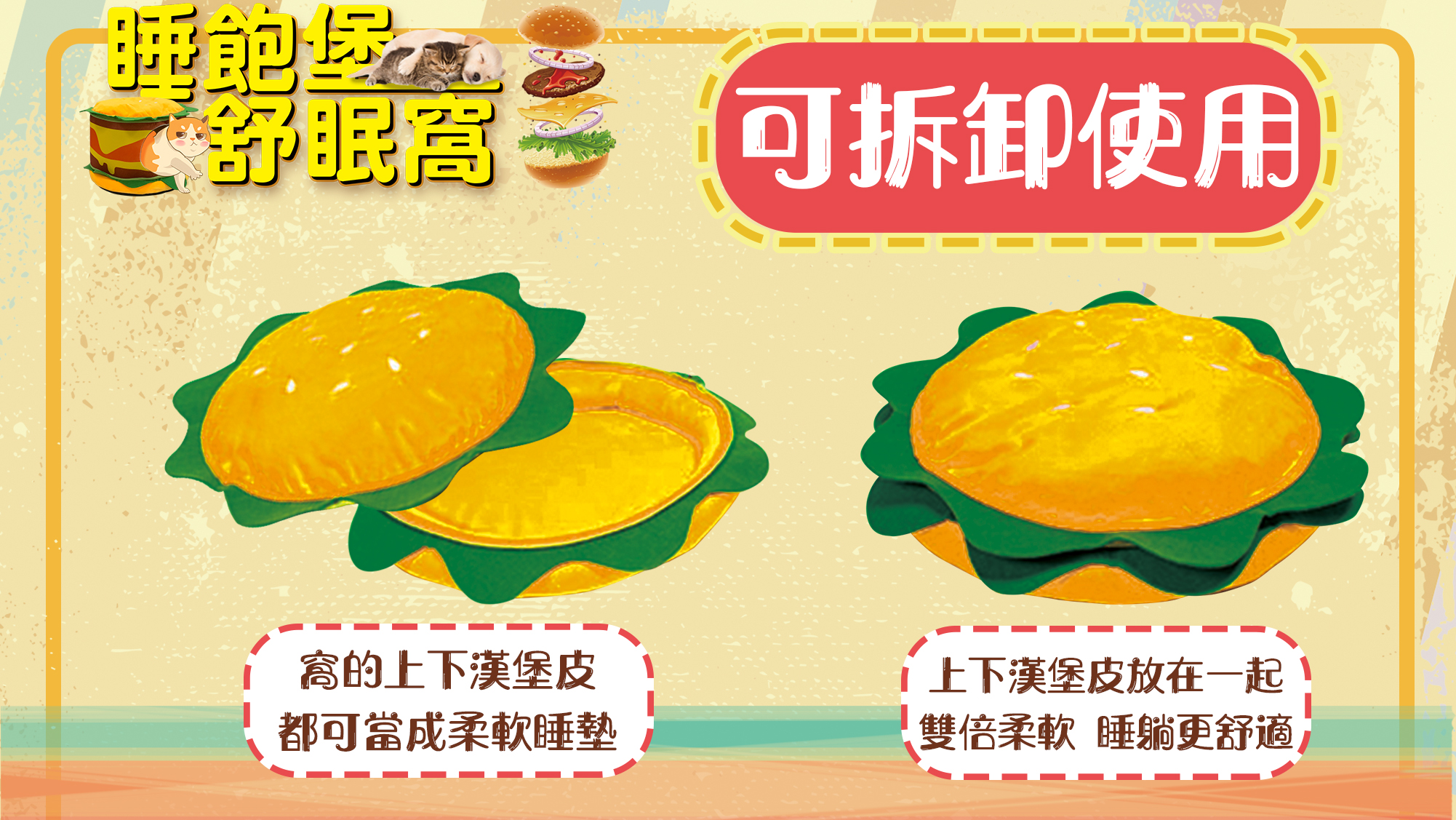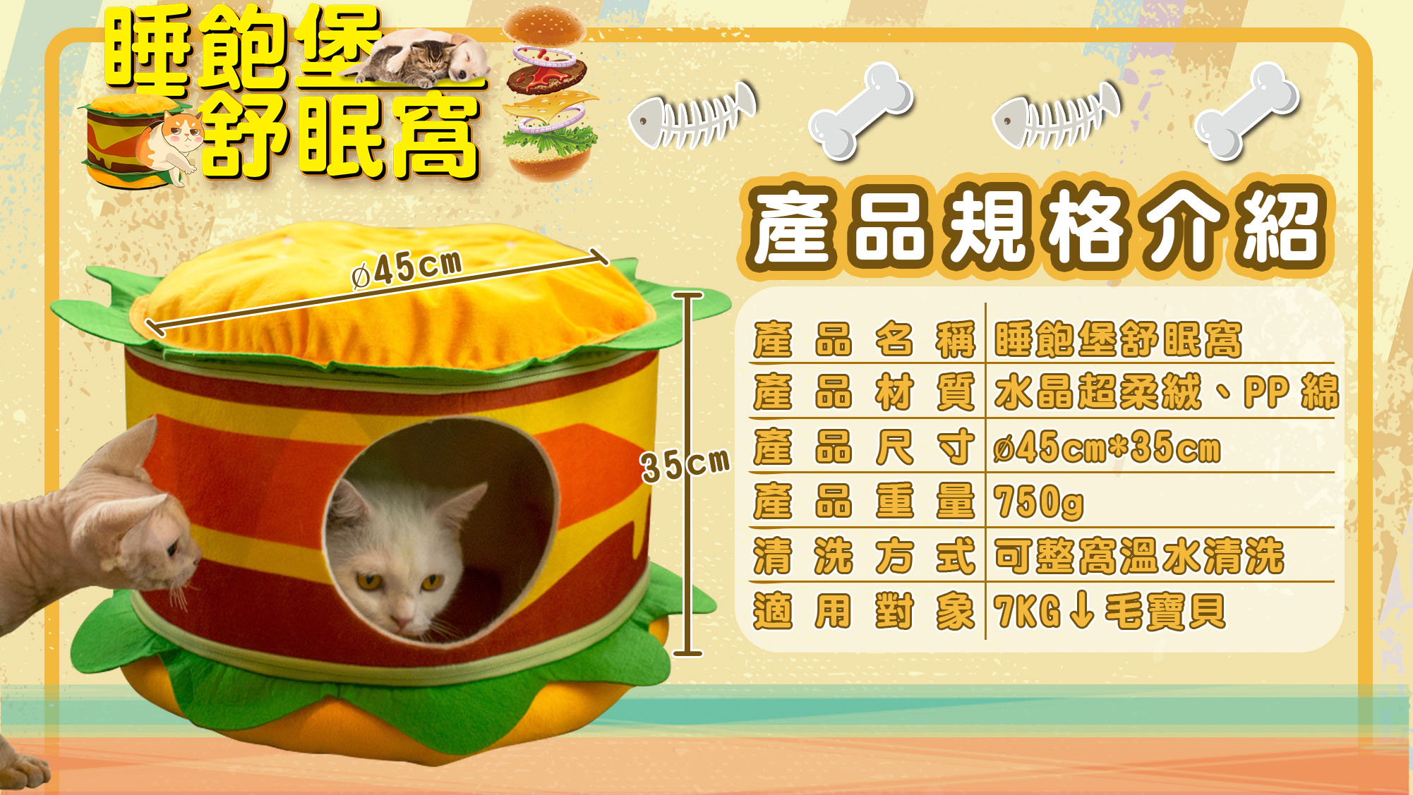 銷售據點 常見問題 Facebook 最新消息 會員登入 0 關於宬泰About us 新品專區New Product 營養保健/護理Care 關節保養 頂級魚油 舒緩軟膏 伊莉莎白頸圈 手術衣 喵星人洗手間 Cat Litter 豆腐砂 除臭粉 貓砂盆 掛鏟 落砂墊 洗澡清潔Cleaning 洗毛精 護毛潤絲 耳朵清潔 眼睛清潔 乾洗清潔 口腔清潔oral care 噴霧、潔牙水 指套、牙刷 潔淨牙膏 寵物零食Treats 細切條 其他形狀(柱型、圓片) 外出用品Outing 帳篷外出包 後背外出包 側背外出包 前背外出包 推車/推車配件 外出包拉桿車 汽車寵物用品 投影燈/水壺/碗 寵物配件Accessories 喵喵胸背/項圈 汪汪胸背/項圈 汪汪牽繩 撿便袋 狗狗玩具Dog Toy 互動錄音按鈕 磨牙啃咬 潔牙耐咬 絨毛陪伴 藏食互動 貓貓玩具Cat Toy 逗貓棒 貓草玩具 電動貓玩具 可愛小玩具 居家用品Pet Bed 床窩 貓吊床 貓抓板 寵物餐具 居家除臭 小寵用品Hamster 福利專區Refurbished 下場活動預告:2026 5/15(五) - 5/18(一) 展昭台中寵物用品展-口碑場 首頁 福利專區 睡飽堡 品牌:Phoenix菲尼斯 單位:個 選項: 請選擇 漢堡 數量: 1 2 3 原價: NT$ 950 會員價: NT$ 499 *特價福利商品售出不再做退換貨 *數量有限,售完絕版 加入購物車 商品特色 商品成分